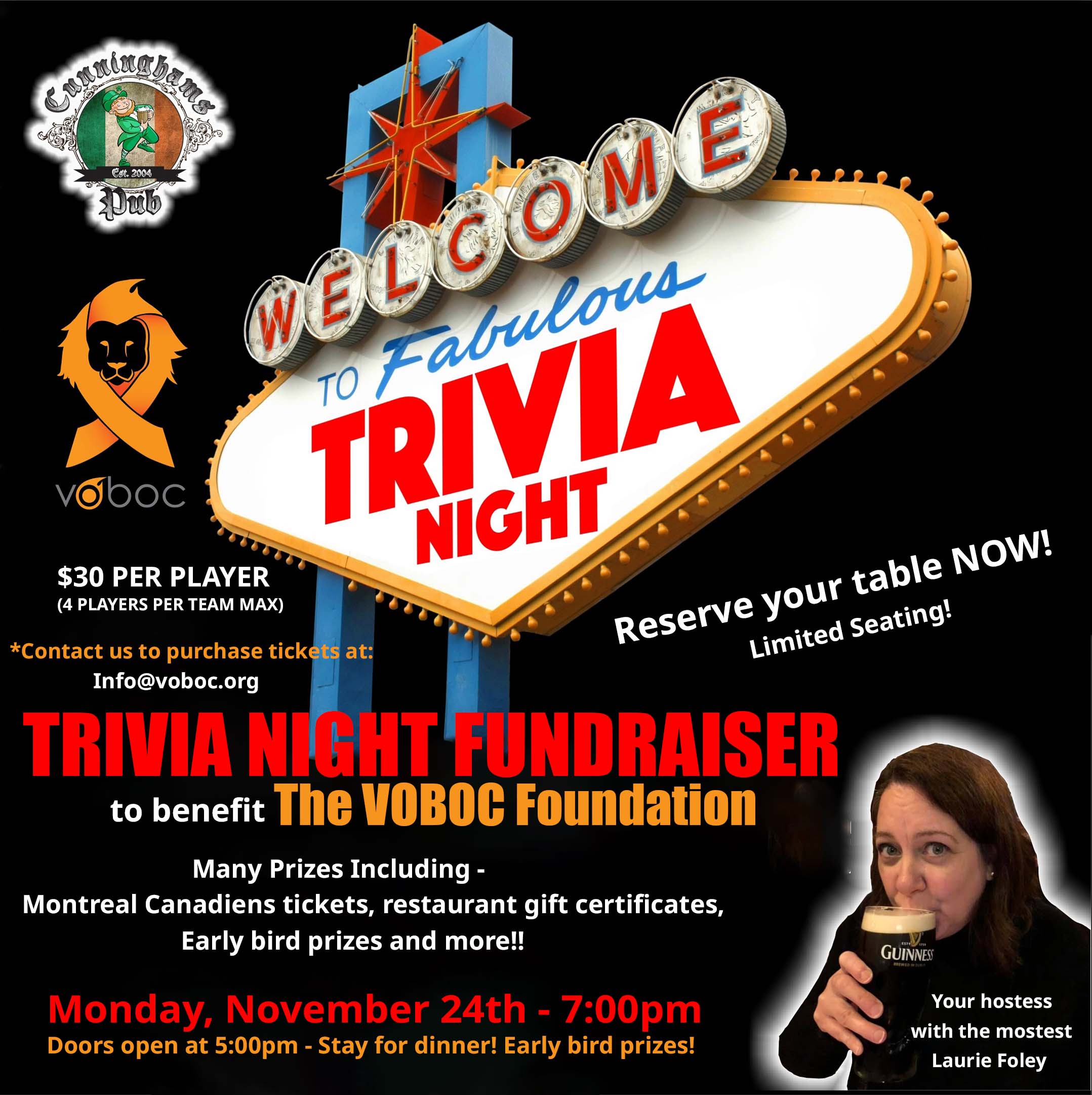 Rejoignez VOBOC à l’occasion d’une soirée quiz organisée au Pub Cunningham le 24 novembre à Sainte-Anne de Bellevue afin de collecter des fonds. Découvrez comment réserver votre place ici.